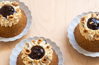 Hazelnut Cakes with Blackberry, Burnt Honey and Tonka Beans